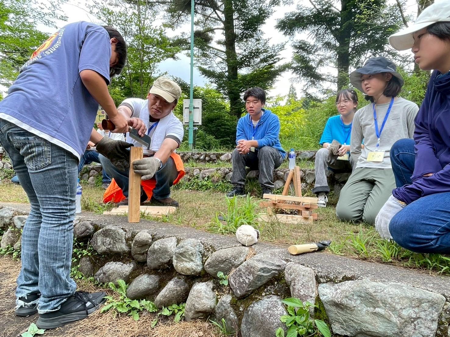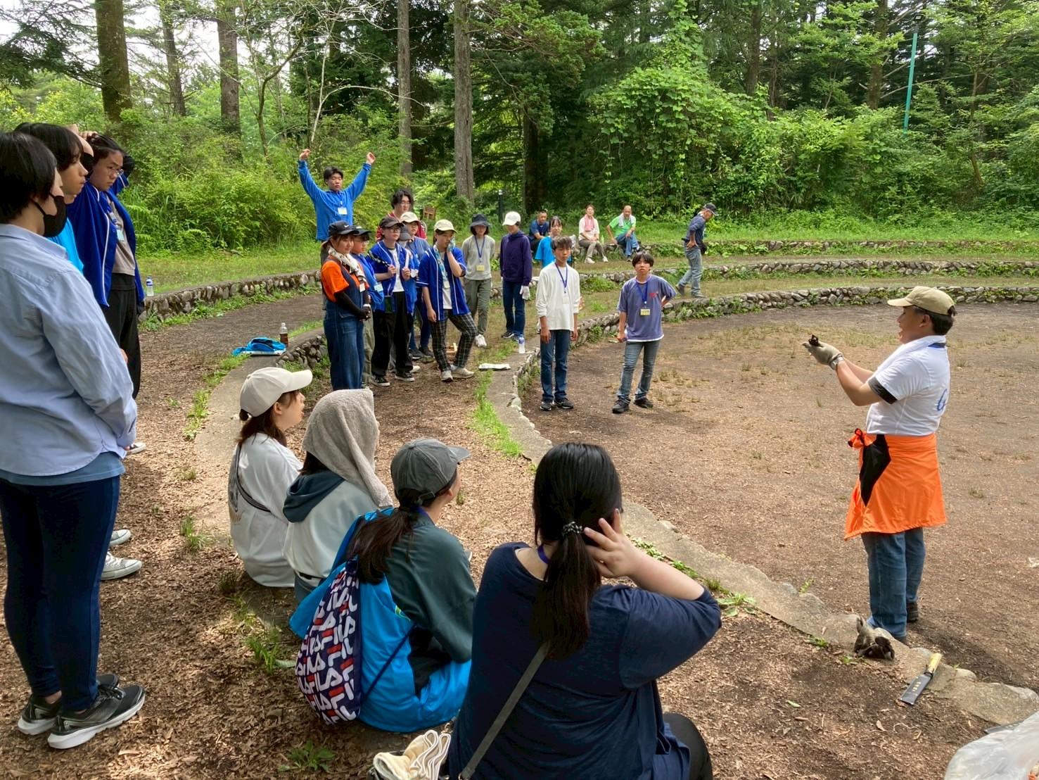 野外研修を開催しました。 Posted on 2025年7月25日2025年7月25日 by 御殿場市子ども会世話人連合会 野外研修を開催しました。 7月5日(土)6日(日)の1泊2日で、御殿場、小山、裾野、静岡の合同野外研修を開催しました。 開講式、オリエンテーションのあと、仲間づくりをしました。 その後、第一営火場でキャンプファイアの目的や野外活動実習をおこない、レストランで夕食をいただきました。 夕食後は、柔剣道場で野外レクリエーションの研修をおこないました。 翌日は、朝食、掃除後、研修のまとめとして、野外活動のふりかえりをおこないました。